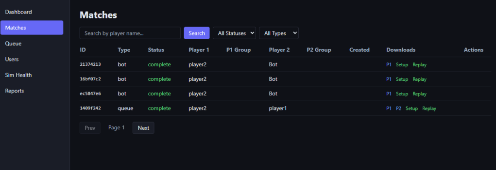 The last bit I should mention is operations, I built a custom admin panel that monitors my queues, matches, and gives me direct links to replays so I can debug/figure out what broke.